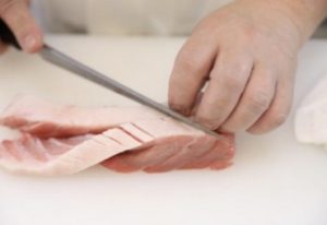 A simple dish that allows you to enjoy the delicious taste of fatty tuna.Make a cut in advance so that the seasoning is firmly attachedThe point is to put it in.